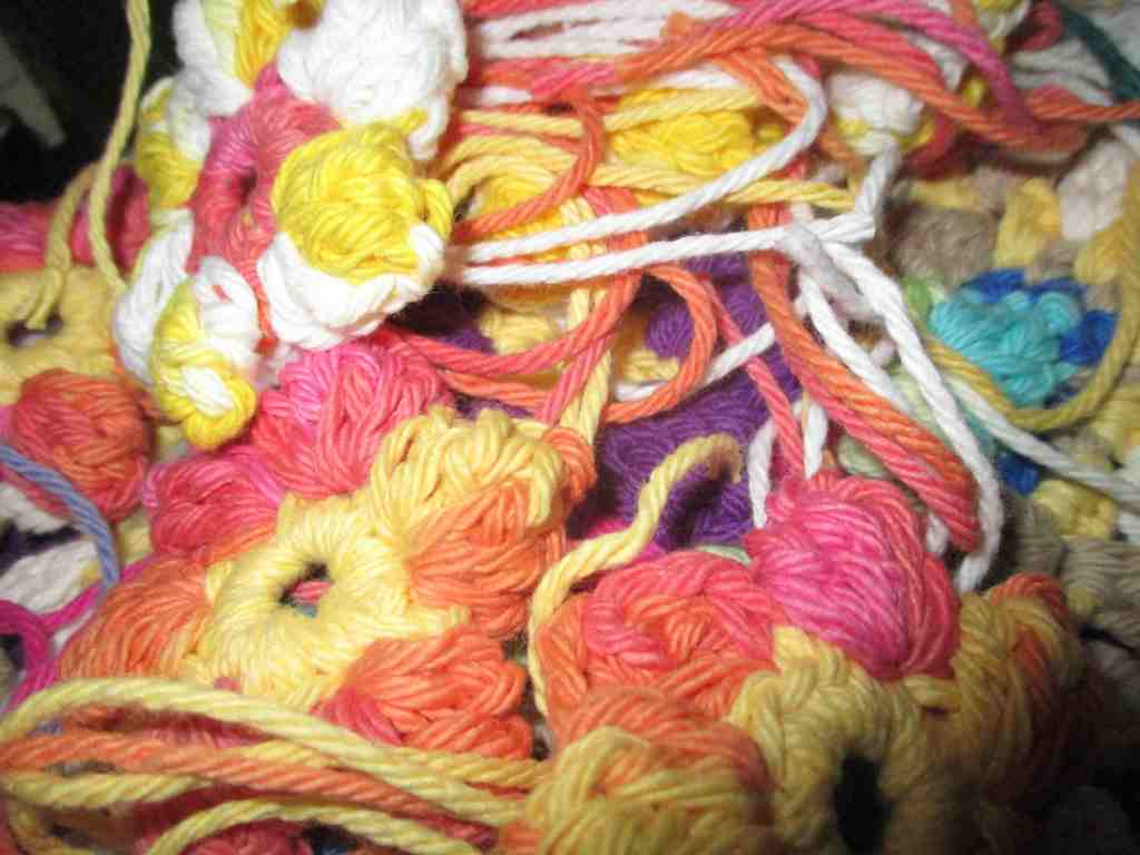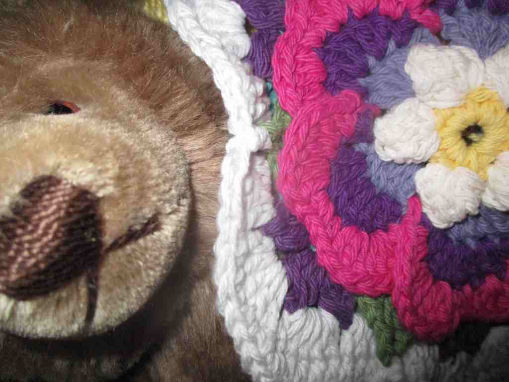 I am also madly in love with her designs, and this is where it begins. I had sort of seen these things called CALS in the youtubes, but then I went to the yarn company itself and I saw what Janie had designed. The first thing I saw of hers was Frida’s Flowers. I did not know we could get the sorts of cottons they make over in England and other places. Well, let me show you how I began on Frida. I had the wrong quality in the cotton! Still though, I was a determined American. I rushed out so fast to try and get some cotton yarn you would not believe it. To a big box store, because that is pretty much all we have. Over a two year period, I practiced with it. It takes me a few tries, you know?