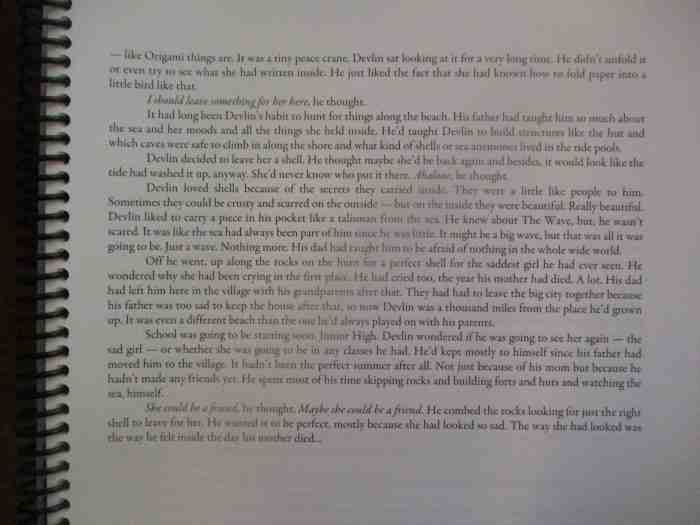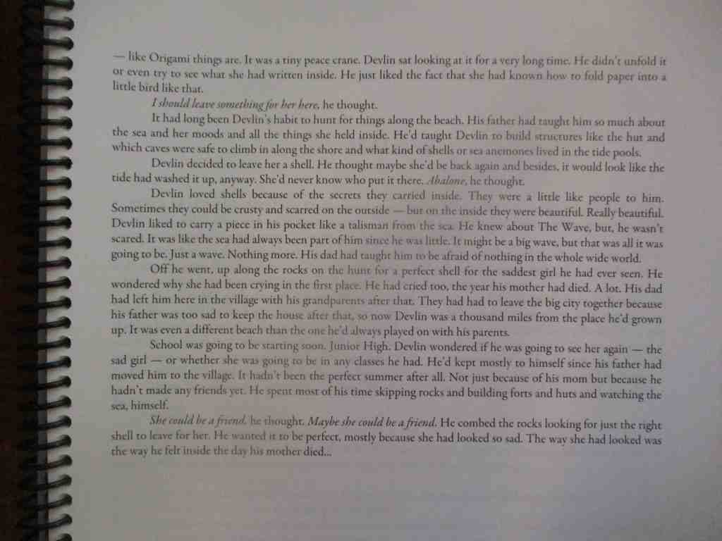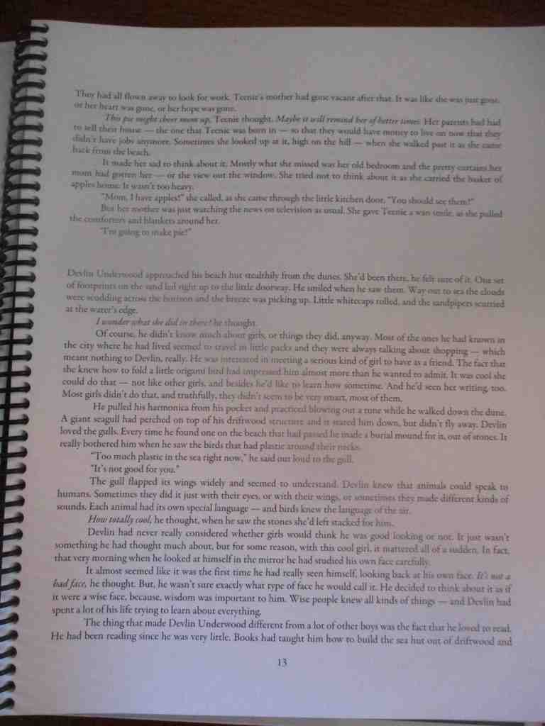 Mom I met a boy on the beach. His name is Devlin Underwood and he moved here because his mom died last year. He lives with his grandparents now. He wants to be friends Mom.