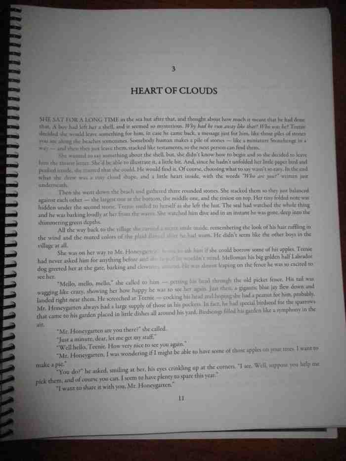 Teenie sits holding her mothers hand, glad she is awake and alive. She describes Mr. Honeygarten and Claire in childhood.