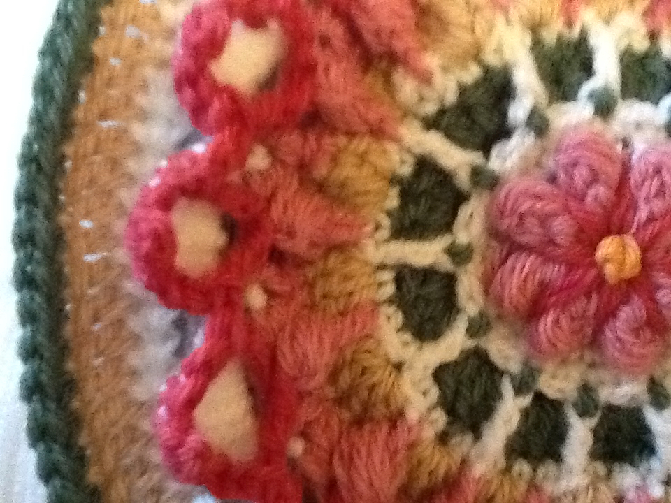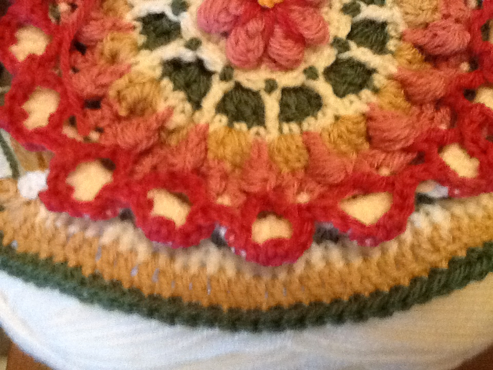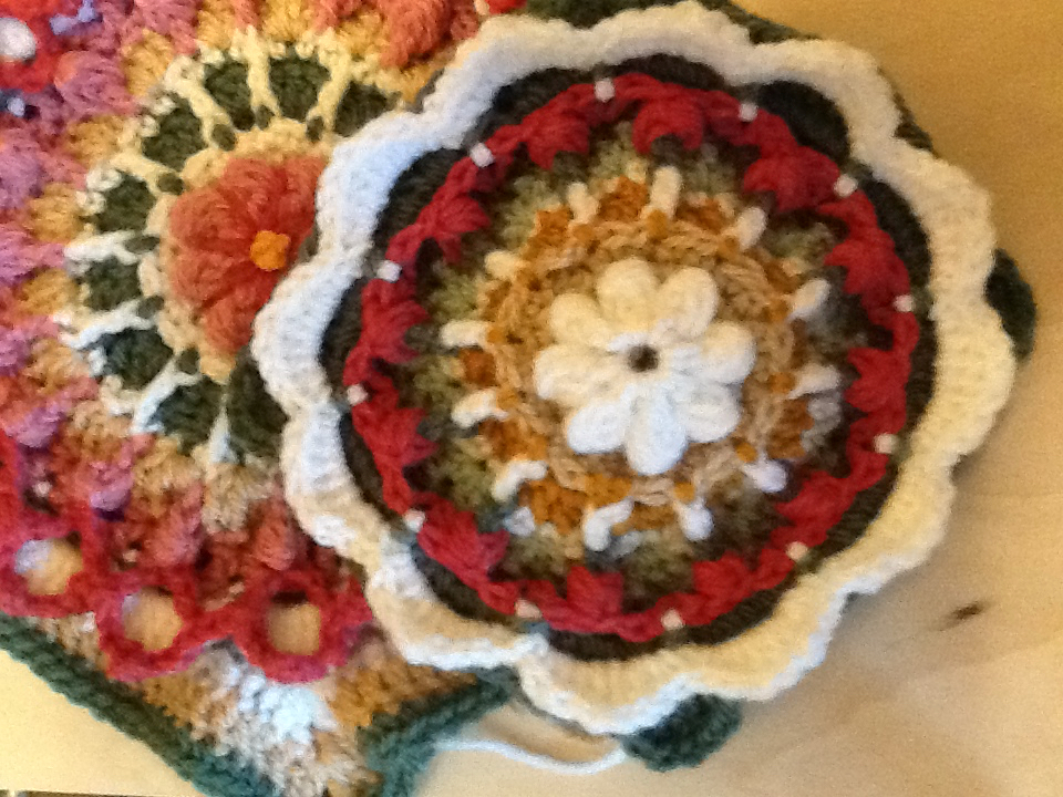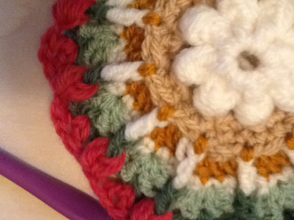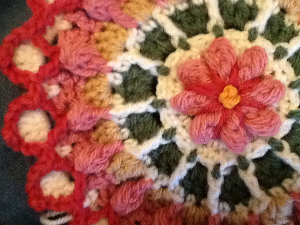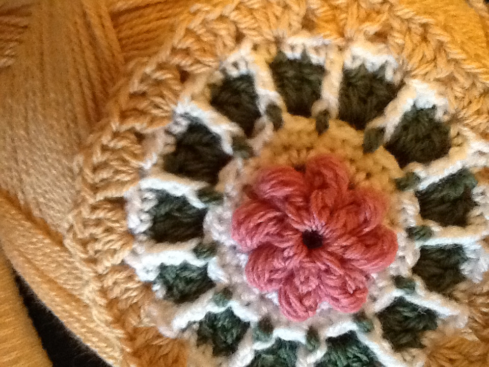 Summer Garden is a textured square with a raised flower. Round by round images follow each row. The square can be made as a 6″‘ or larger. I used a 4″ hook, and primarily yarn from Stylecraft on these first samples, but, I loved the color ranges in Wool of the Andes as well.
