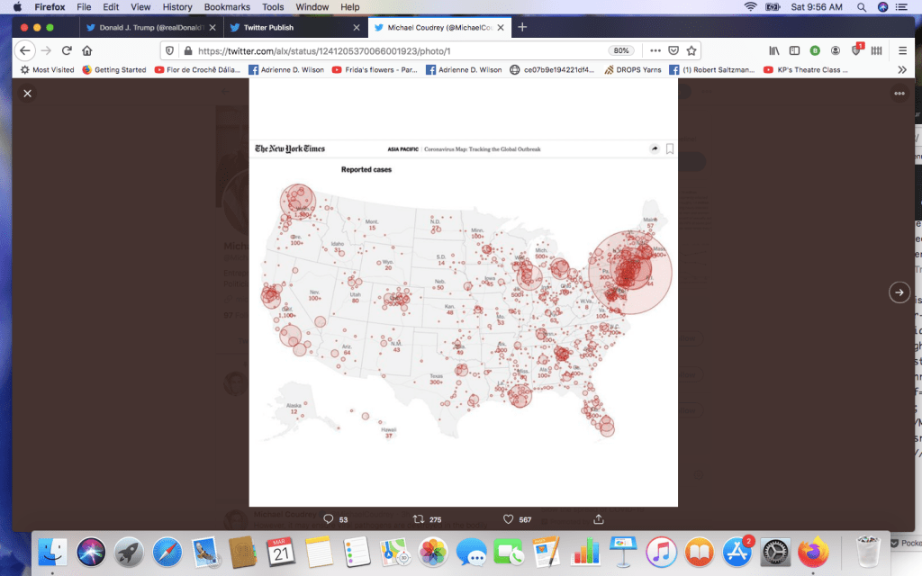 I am watching what the president has to say along his Twitter feed. One of the worst aspects of this crisis is to watch all the lesser politicians scramble to get in line for their potential shot at the JOB, because this is what they are doing. Trying to make themselves look good. In this I refer to Cuomo and Newsom along their footage. What the President said yesterday or so is that he is LEAVING IT UP TO THE STATES. The message from both Cuomo and Newsom is that millions will die, so it isn’t very comforting at all.
